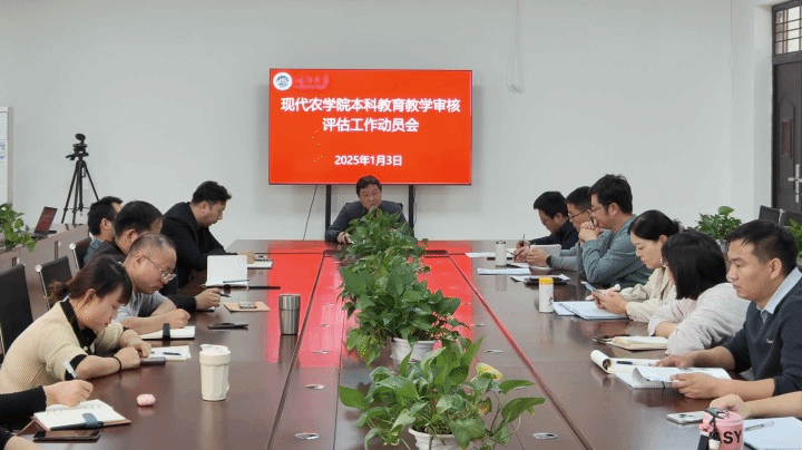 为积极响应并全力配合学校关于本科教育教学审核评估评建工作的整体部署,确保评估工作的顺利进行,2025年1月3日,现代农学院在C401会议室召开本科教育教学审核评估工作动员大会。此次会议由现代农学院党支部书记楼卫国同志主持,学院全体教职工参加。