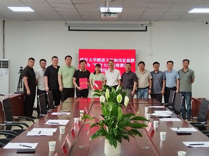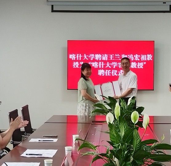 座谈会期间,党委常委、副校长罗浩波为王兰教授、冯宏祖教授颁发了“喀什大学客座教授”聘书。