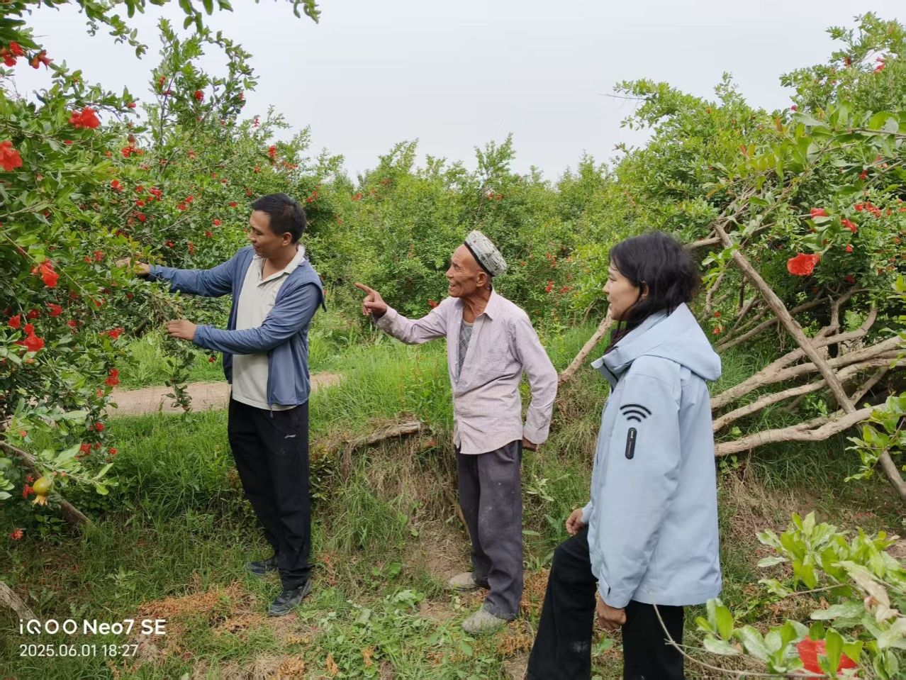 在田间地头调研中,团队详细了解到当地农业生产面临的多重挑战,如石榴种植方面:受落花落果、冬季埋土保苗及开春放苗等问题制约,人力成本高。核桃产业方面:虫害问题逐年加剧,部分区域虫害已威胁到人员安全,防治需求迫切。桃树与西梅种植方面:因病虫害爆发导致成片树木死亡,面临病虫害防治技术瓶颈,直接影响果农收益。小麦、玉米等主粮作物也因病虫害导致不同程度减产,制约粮食安全生产与农户增收。村内孤寡老人群体普遍面临劳动力严重不足、专业防治技术匮乏等问题,农业生产自主性与抗风险能力较弱。