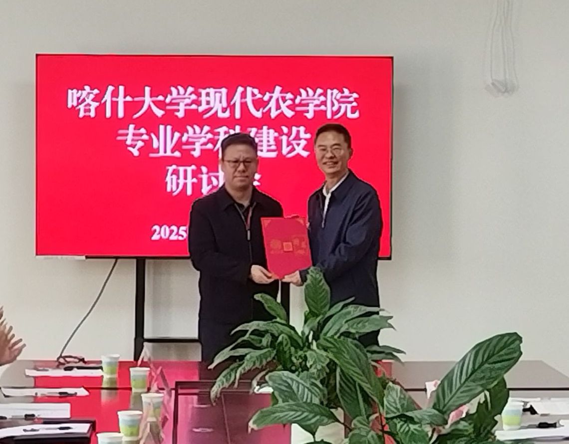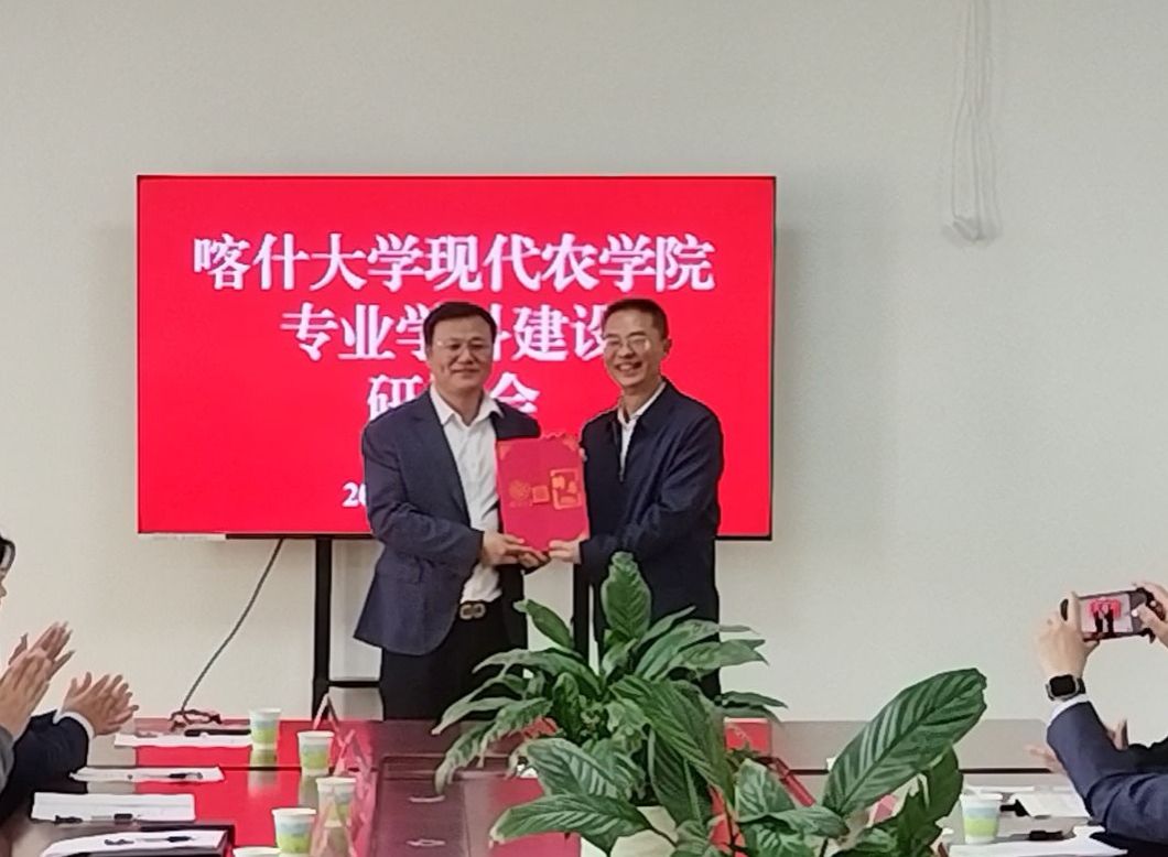 为了积极促进学院学科建设高起点发展,邀请来自中国农业科学院都市农业研究所、中南林业科技大学、山东农业大学、新疆农业大学、新疆和田学院、中国农业科学院、华中农业大学以及喀什地区农业农村局等8个单位16位疆内外知名教授、研究员,召开了现代农学院学科建设研讨会,学院以此次研讨会为重要契机,系统梳理、消化吸纳各位专家的意见,明确了未来五年的重点发展方向、具体目标和实施路径。研讨会期间,党委常委、副校长罗浩波为戚智勇、李清明研究员等专家颁发了“喀什大学客座教授”聘书,为现代农学院学科发展注入智力支持。