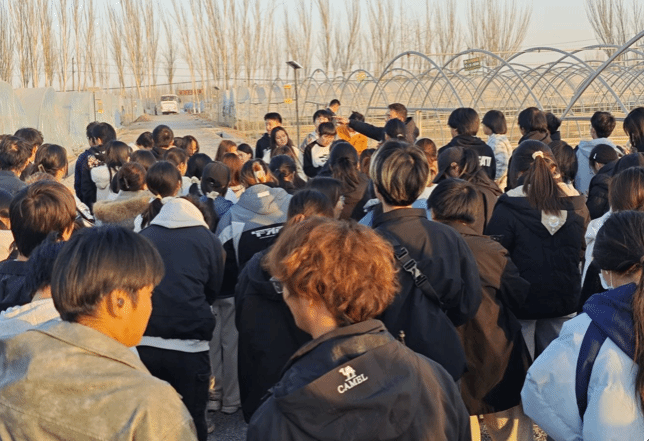 随后,实习队伍前往疏附县草莓采摘园。在园区负责人的引导下,同学们了解了草莓的品种选育、育苗技术、大棚环境调控及采摘期管理等核心内容。重点学习了红颜、章姬等优质草莓品种的生长习性与栽培技巧,以及无土栽培、立体种植等新型种植模式在提升草莓品质与产量中的应用。在采摘体验环节,同学们结合所学知识,观察草莓果实成熟度、果形品相与生长环境的关联,进一步加深了对果树设施栽培技术的理解,同时感受到特色林果产业助力乡村振兴的强劲动力。