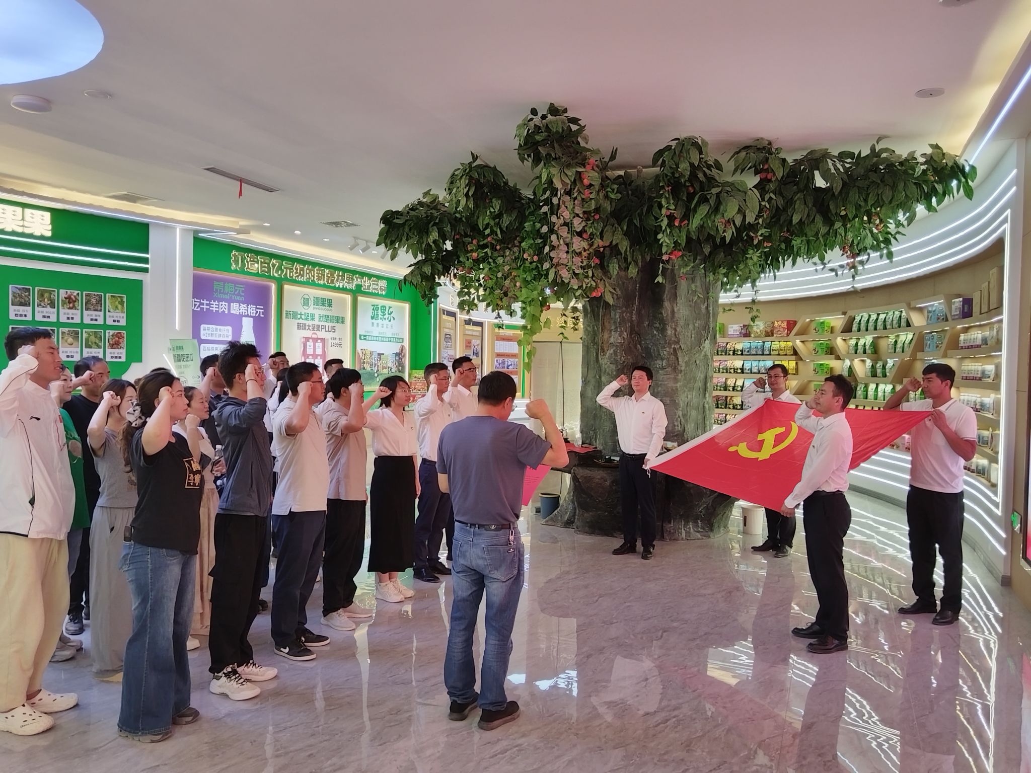 全体党员面向党旗重温入党誓词,坚定理想信念,强化身份意识与责任担当。随后,现代农学院党员教师根据企业需求,开展技术咨询、产品宣传、市场调研等志愿服务活动,切实助力企业发展,将党员的先锋模范作用落到实处。
