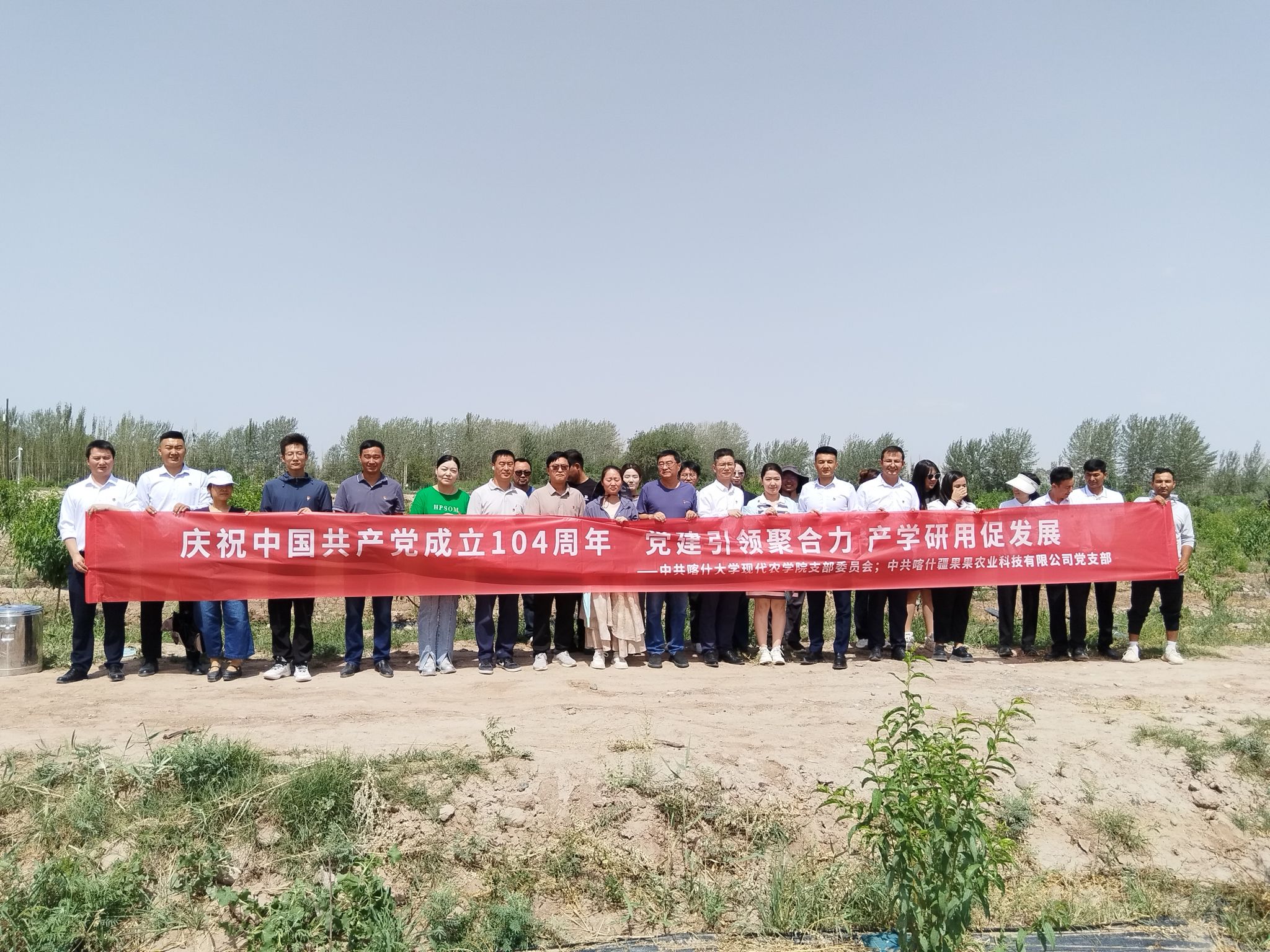 为深入开展庆祝中国共产党成立104周年“党旗映天山”主题党日活动,深化喀什大学现代农学院与喀什疆果果农业科技有限公司在校企合作、产学研融合方面的交流与合作,现代农学院全体教师党员于2025年6月29日在喀什疆果果农业科技有限公司开展系列活动。