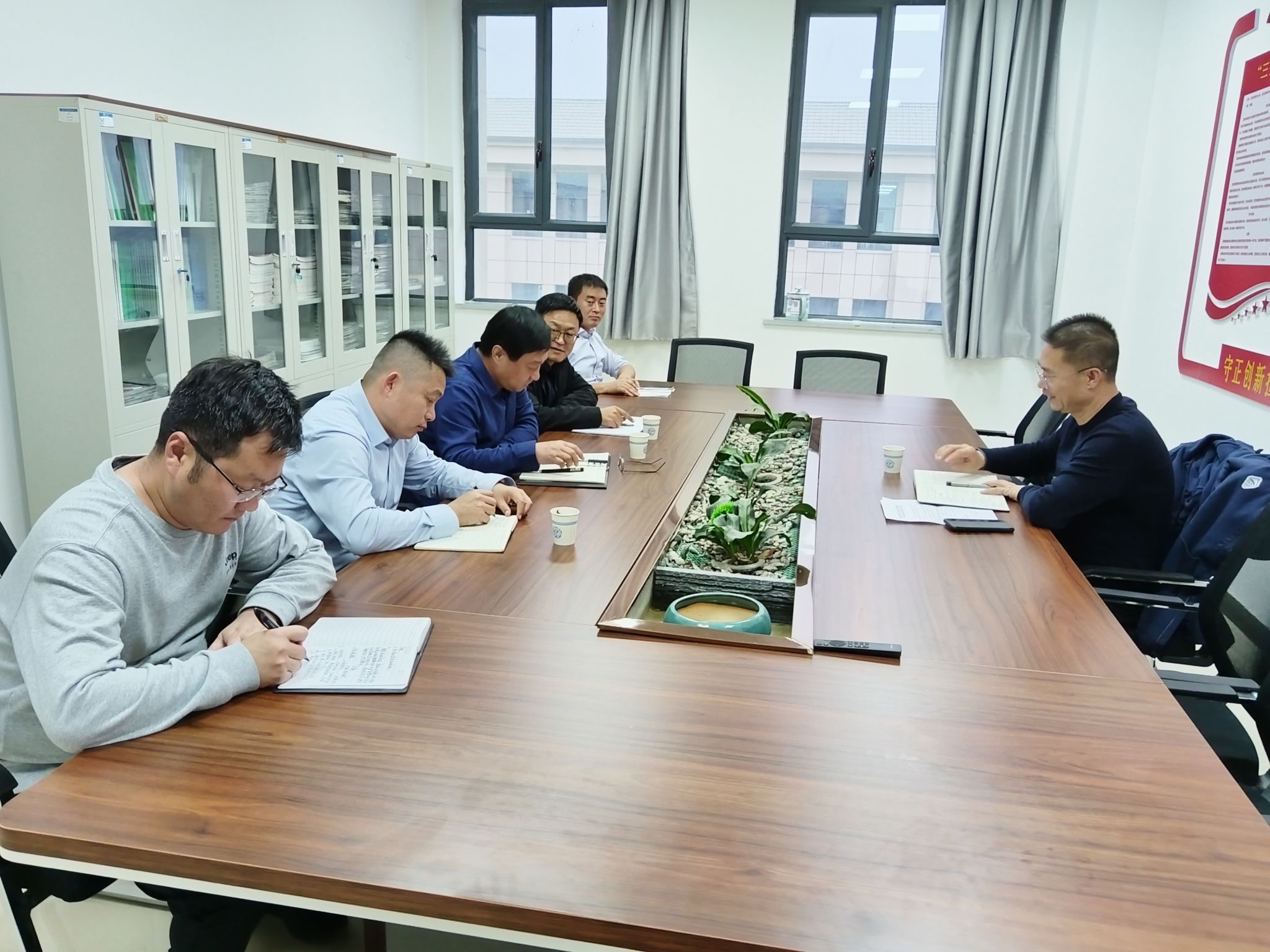 罗浩波副校长认真听取了汇报,对学院党风廉政建设工作给予了高度评价。他指出,学院党委政治站位高、工作措施实、整改成效明显,展现了良好的工作风貌,并结合当前形势和学院实际,提出了具体要求。罗浩波副校长强调,要深化理论学习,将党风廉政建设与学科建设、人才培养等中心工作紧密结合,确保党的决策部署在学院得到全面贯彻;要健全风险防控体系,重点加强各项经费管理,推动“不能腐”的体制机制更加完善;作风建设不能松懈,要紧盯关键环节,常态化开展警示教育,通过案例通报、廉政谈话等形式,增强教职工的廉洁自律意识;要求学院以党风廉政建设为保障,在学科评估、人才引进、学生就业等工作中体现全面从严治党成效,为学院高质量发展保驾护航。
